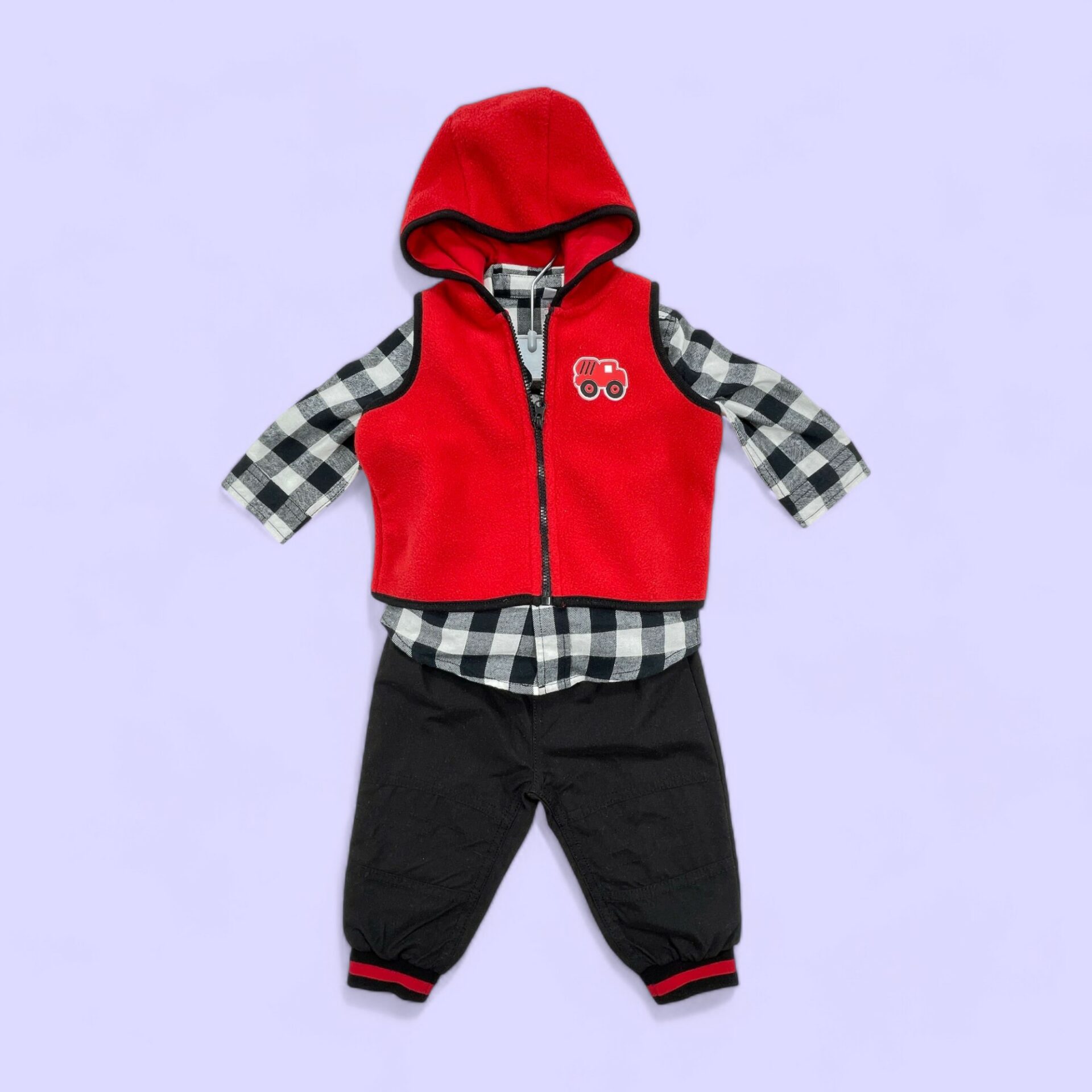 - Ensemble polaire, chemise à carreaux, et pantalon