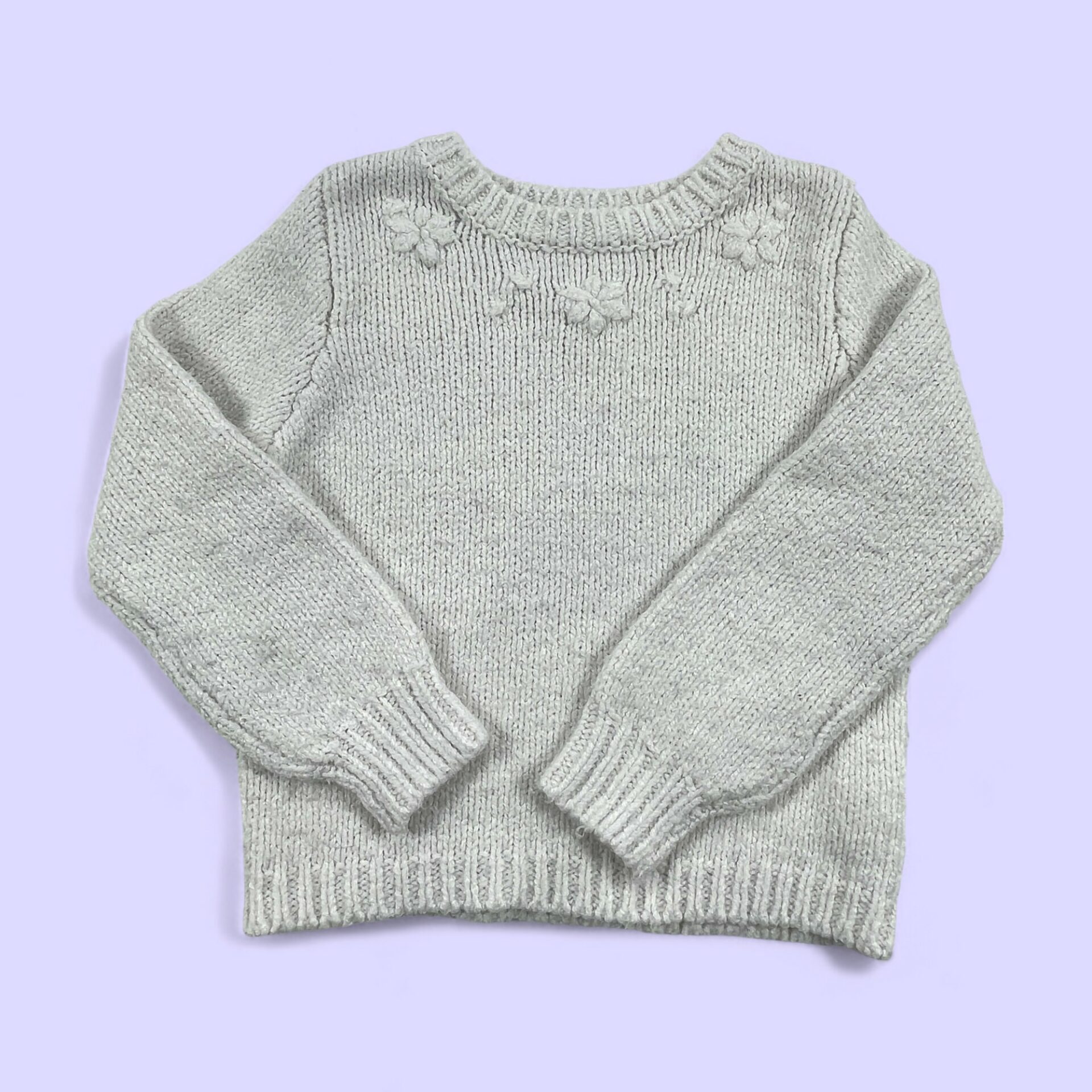 - Tricot blanc avec motif fleur autour du col