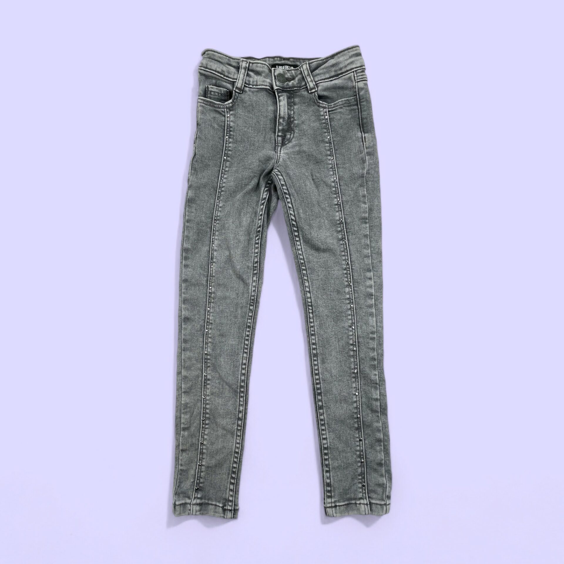 - Jean gris avec coutures centrales et petits strass