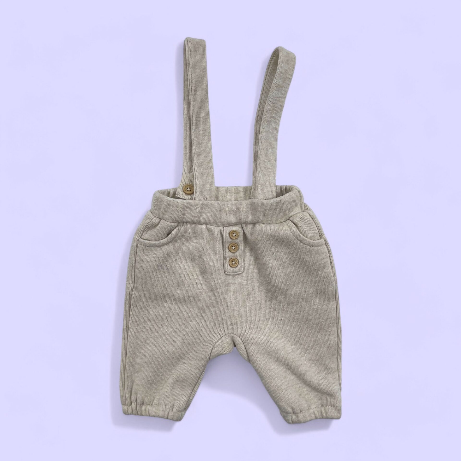 - Pantalon beige avec bretelles